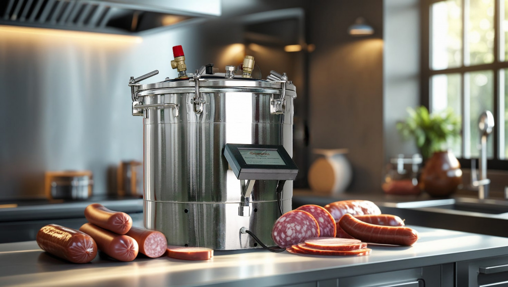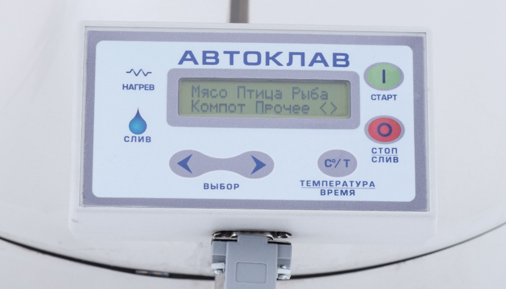 Электрический автоклав из пищевой нержавеющей стали AISI 304 полностью автоматизирует процесс стерилизации. Четыре сенсорных режима — «Мясо», «Птица», «Рыба», «Компот» — а также возможность сохранения до 10 собственных программ.